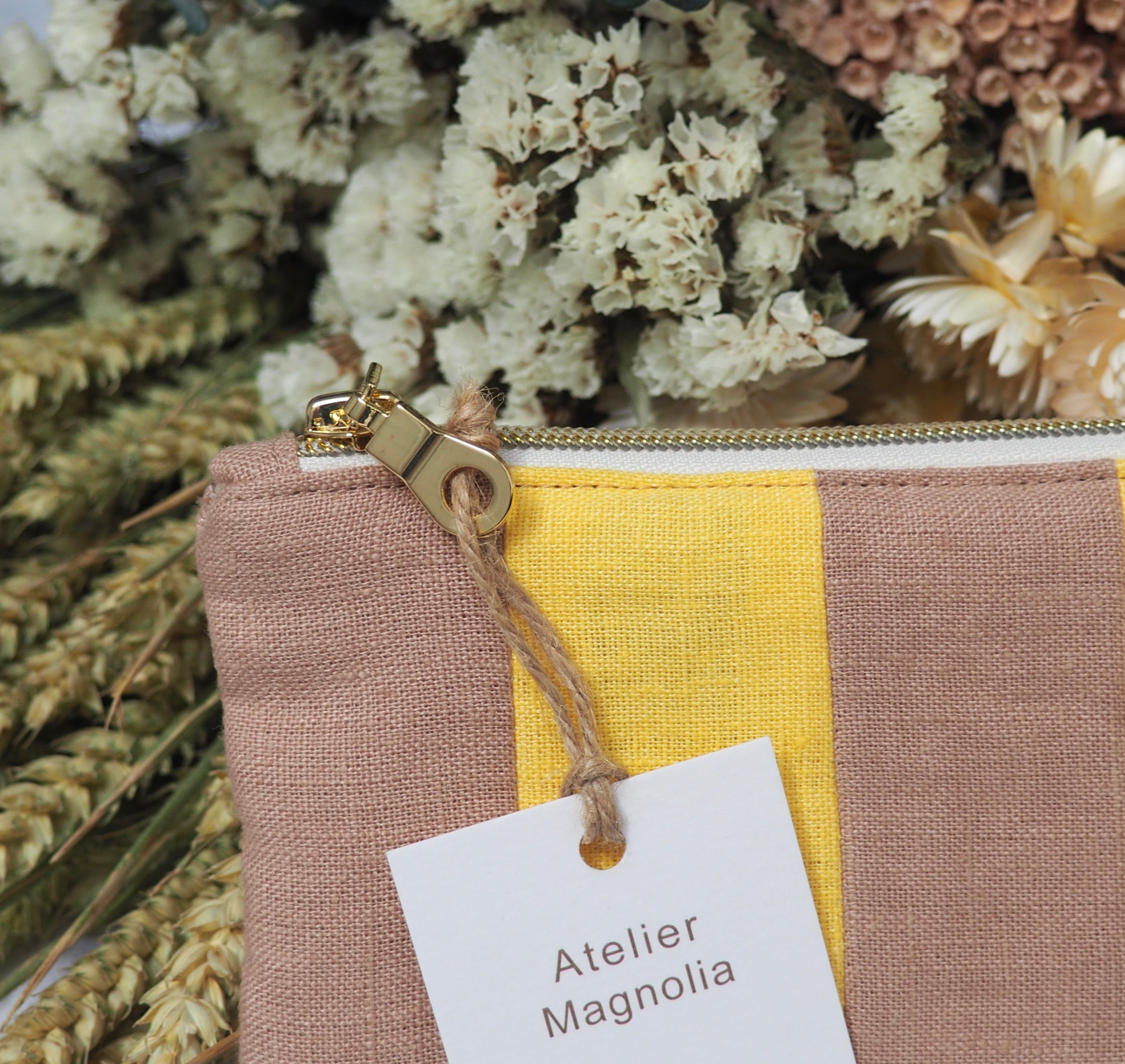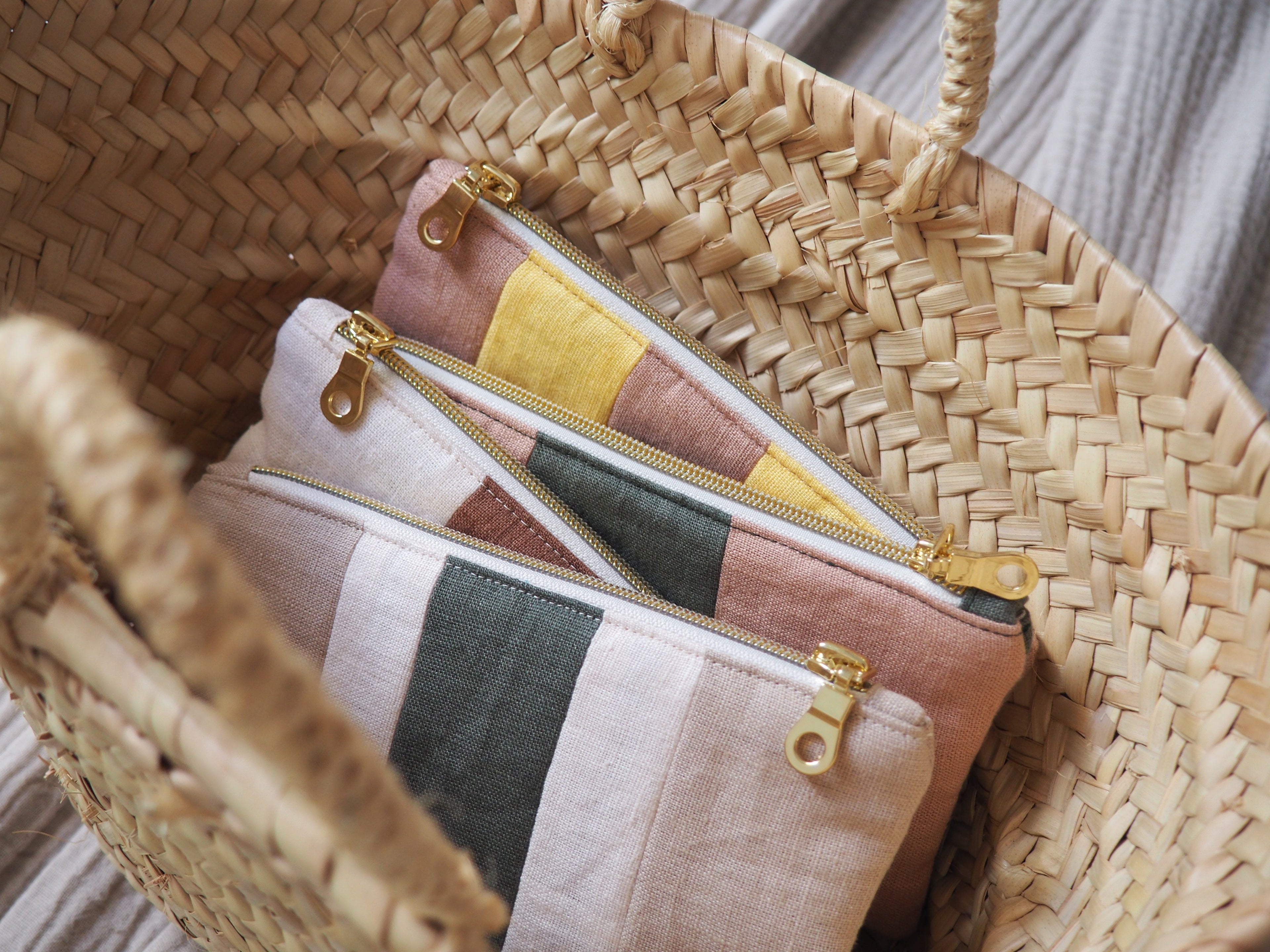 Des essentiels du quotidien en lin matelassé, à glisser dans une pochette...